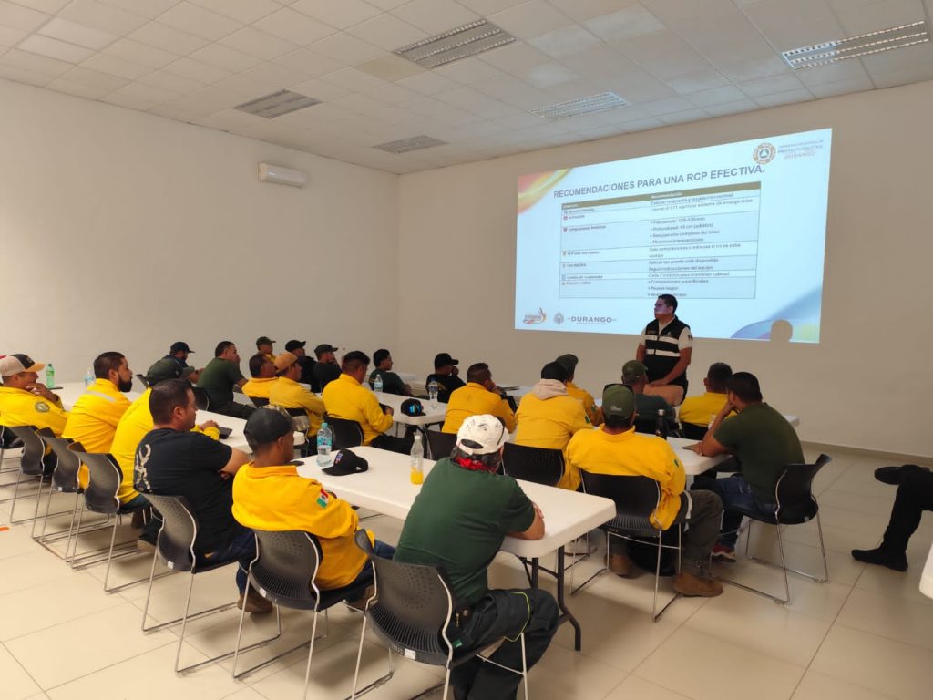 Brigadas combatientes de Comisión Nacional Forestal participan en jornada de capacitación de Protección Civil, formación relevante ante el riesgo que conlleva su labor, lo cual les permitirá mantenerse seguros y mejor preparados ante cualquier situación de emergencia.
